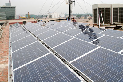 hệ thống điện mặt trời nối lưới công suất 12kW đã được lắp đặt hoàn thiện và đưa vào khai thác sử dụng tại tòa nhà Bộ Công Thương, 54 Hai Bà Trưng, Hà Nội. Đây là kết quả của dự án “Lắp đặt hệ thống pin mặt trời nối lưới tại trụ sở Bộ Công Thương nhằm tiết kiệm năng lượng và bảo vệ môi trường”.